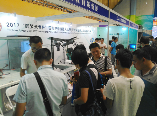 观摩2017国际空中机器人大赛暨无人机教育装备展(张炜哲 摄)