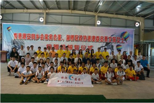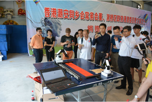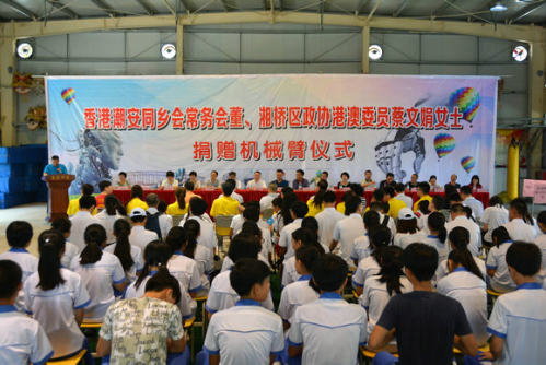 8月17日上午,香港潮安同乡会常务会董、湘桥区政协港澳委员蔡文娟女士捐赠机械臂仪式在意溪中学举行。