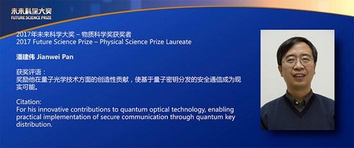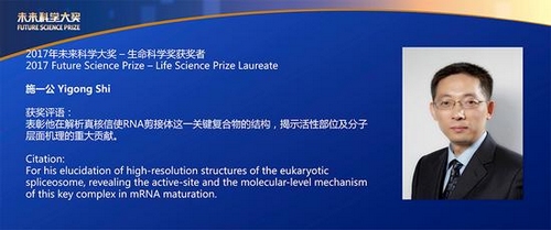2017年中国未来科学大奖于9月9日在北京揭晓,清华大学教授施一公获“生命科学奖”,中国科学技术大学教授潘建伟获“物质科学奖”,北京大学教授许晨阳获“数学与计算机科学奖”。每位获奖者奖金为100万美元,使用方式不受限制。