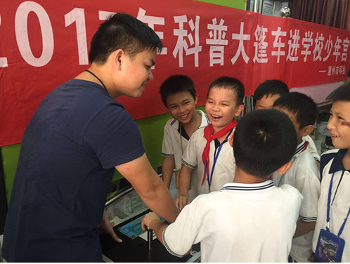 9月份,惠州市各县区开展了以“创新驱动发展,科学破除愚昧”为主题的2017年全国科普日宣传活动。科普大篷车积极响应,先后前往惠阳区星河丹堤社区、惠城区中小学综合教育实践基地、仲恺区潼侨中心小学参加展出。 活动期间,大篷车在现场摆满了“青少年安全教育”、“反对邪教”、“食品安全”等科普展板,更有集科学性与趣味性于一体的科普展品,科普志愿者现场派发知识手册2000余份,深受广大群众、实训学生、在校师生的热烈欢迎,惠及3700余人。