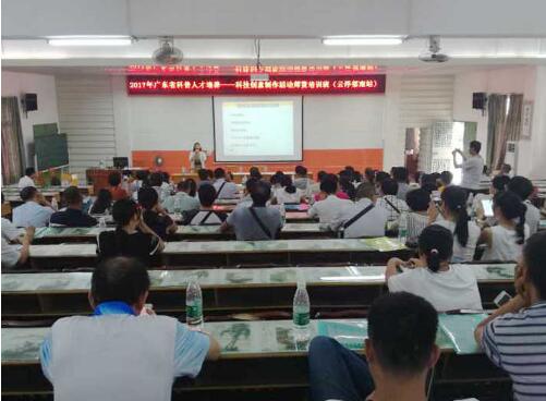 期间,2017年广东省科普人才培养——科技创意制作活动师资培训班(云浮郁南站)邀请了云浮市新兴县实验中学主任彭仕成、新兴县新城镇桥亭小学校长麦斯燕作青少年七巧科技创意制作辅导;邀请了广州市第四十一中学航模工作室开展航模创意制作辅导;邀请了省航空学会佛山航模队进行了航模展示及航模飞行表演;邀请了肇庆市科协科普大篷车进行科普展品互动体验。中小学科技教师等约150人参加了培训。