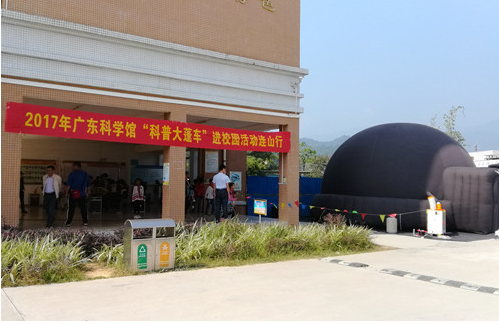 10月24-25日,清远市连山县科协、县教育局联合广东科学馆,在连山县太保中心学校、永和中学举行“2017年广东科学馆‘科普大蓬车’进校园活动连山行”。活动内容丰富多彩,既有科学实验表演、机器人舞蹈,也有互动益智游戏、移动球幕影院等,参加活动的师生共计900多人。通过“科普大篷车”进校园活动的平台,利用其教育资源,把科技知识送到山区师生身边,有助于培养当地青少年的科技意识和科学技能。