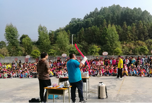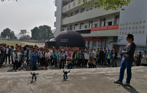 10月24-25日,清远市连山县科协、县教育局联合广东科学馆,在连山县太保中心学校、永和中学举行“2017年广东科学馆‘科普大蓬车’进校园活动连山行”。活动内容丰富多彩,既有科学实验表演、机器人舞蹈,也有互动益智游戏、移动球幕影院等,参加活动的师生共计900多人。通过“科普大篷车”进校园活动的平台,利用其教育资源,把科技知识送到山区师生身边,有助于培养当地青少年的科技意识和科学技能。 活动现场剪影 科学实验表演 机器人舞蹈