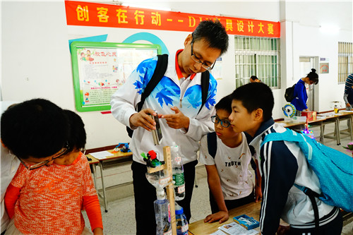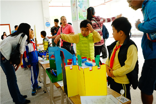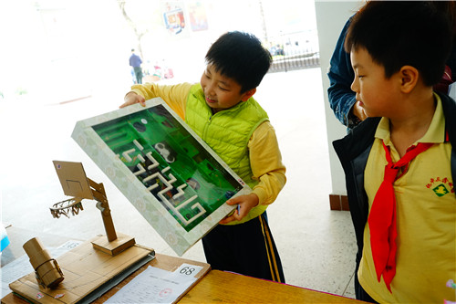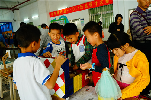 11月4日,创客在行动——DIY玩具设计大赛展评活动在江门市紫茶小学举行,62件拟获一、二等奖的作品深受第5届广东省青少年实践创新能力挑战赛师生家长的好评,300多人为自己心仪的作品投上一票。