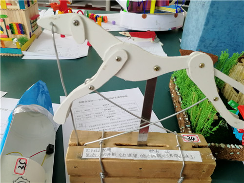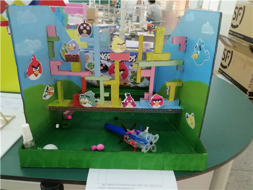 展评作品中,有自制趣味弹珠、投石机、攻城器、迷宫等游乐玩具,也有芭比娃娃、玩具汽车、旋转音乐盒等娱乐玩具。这些作品,都是同学们将残旧玩具拆解组装而成,亦或利用环保废旧物品制作,充分展现了我省青少年的创意结晶!