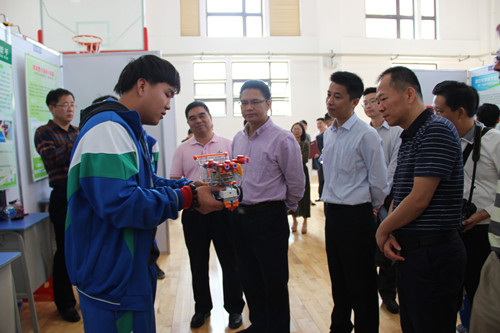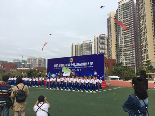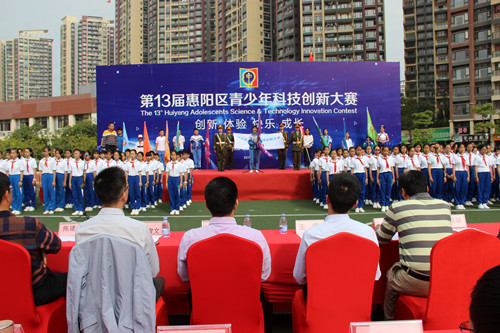 11月6日上午,由惠阳区科协、区教育局、区科技局主办,华南师范大学附属惠阳学校(简称“惠阳华附”)承办,星河集团(惠州公司)协办的第13届惠阳区青少年科技创新大赛圆满落幕,并在惠阳华附举行颁奖仪式。惠州市科协副主席黄宗太、惠阳区副区长王程及主办单位、承办单位有关领导出席仪式并为获奖师生颁奖。参加本次活动的还有惠州市科协普及部有关负责人,惠州学院的专家评委,各镇(街道)科协主席、秘书长,全区各中学、中心小学、职业技术学校和城区各学校的校长、参赛师生,新闻媒体朋友,惠阳航模运动协会会员,以及惠阳华附的老师和学生等共1300多人。