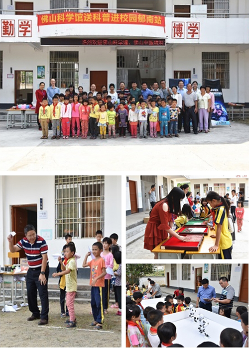 不忘初心,秉承弘扬科学精神、普及科学知识、传播科学思想和科学方法的宗旨,鼓励青少年爱科学、学科学、用科学。2017年10月26至27日,在佛山科学馆馆长李国斌率领下一行12人,先后到云浮市郁南县的桂圩镇两口小学、桂圩镇初级中学开展“教育关爱,科普下乡”活动。