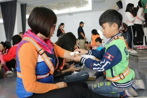 活动包括地震逃生体验、黑房子逃生、心肺复苏技术培训和应急外伤包扎教学等。其中最让学生难忘的是地震逃生体验活动。据参加活动的学生介绍,当他们戴上眼镜后,仿佛置身于一个虚拟的家中,客厅里沙发、电视机等各种“家具”一应俱全,甚至还有一只宠物狗。随着房屋一阵晃动,“地震”来了,学生们根据绿色箭头提示,来到厨房放置应急物品的地方,通过操作,将药箱、手电筒、斧头、灭火器、水等物品一一放进急救箱。由于房屋晃动,小狗发出预警声音,学生们跟随小狗来到了餐厅桌子下面躲了起来。随后就是一阵“地动山摇”,天花板脱落。但是躲在“桌子”下面的学生受到了很好的保护。紧跟着一阵晃动之后,房间忽然起火,学生跟随小狗走出房间,演习训练结束。短短几分钟的体验,学生们在栩栩如生的虚拟环境里,完成了一次地震逃生,让学生们懂得如何通过动物的反常行为判断地震来袭,应该提前准备哪些地震应急物品,地震中哪些地点安全,哪些地点极度危险,火灾发生时如何应对等。