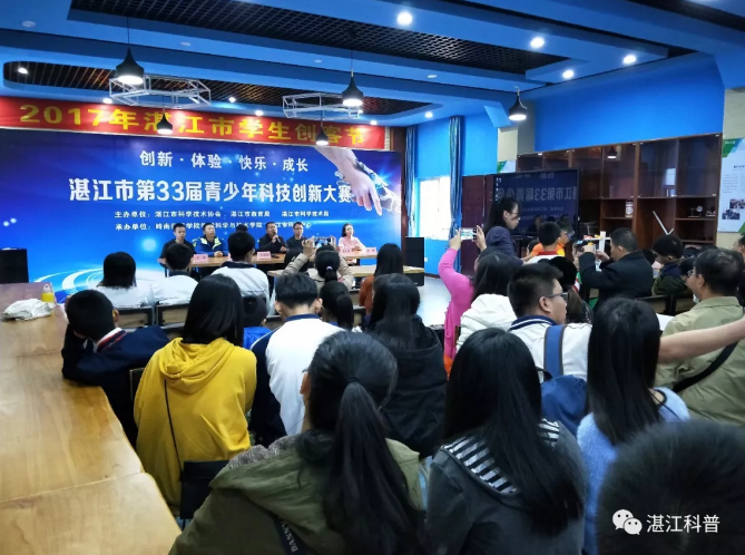 2017年12月29日上午,由湛江市科协、教育局、科技局联合主办,湛江市科普中心、岭南师院物理科学与技术学院承办的第33届湛江市青少年科技创新大赛终审展评活动在岭南师范学院物理楼创客空间隆重举行。本届大赛主题为“创新·体验·快乐·成长”,全市30多所中小学校的150多名学生参与展评活动。