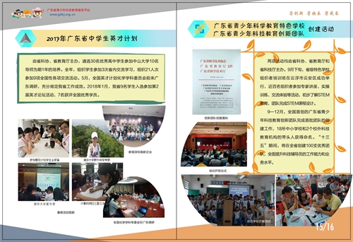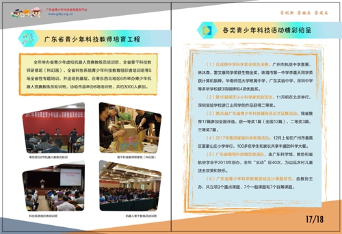 2017年,在各级科协、教育和科技部门的大力支持,全省广大师生的共同努力下,省青少年科技中心和省青少年科技教育协会不断改革,积极创新,在组织开展各类青少年科技活动、科技教师交流培训和特色学校创建活动等方面取得一定成效。为了更好总结过去一年的工作,我们编印了2017年活动小册子,供大家共勉。 小册子.pdf 广东省青少年科技中心 广东省青少年科技教育协会 2018年1月12日