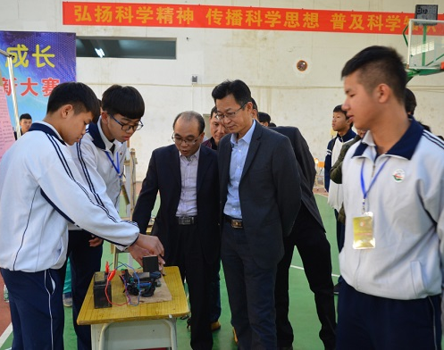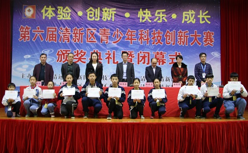 2017年12月27日,由清远市清新区科协、区教育局、团区委和区经信局主办的清新区第六届青少年科技创新大赛在清新区第三中学隆重举行,清新区人民政府副区长郑伟其、区科协主席陈政昌、副主席黄进飞、团区委书记夏晶晶、区教育局副局长潘惠霞、区经信局科技办主任黄树南、区三中校长李英祺等领导到现场观摩比赛并为获奖者颁奖。
