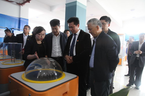 参加启动仪式的领导参观体验科技展品