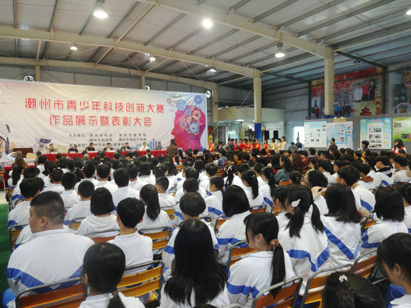 3月15日上午,2017年潮州市青少年科技创新大赛作品展示暨表彰活动在湘桥区意溪中学举办。市委常委、统战部部长徐和,市政协副主席、市科协主席柯泓,市科协党组书记林峰、市教育局局长陈浩松、市科技局局长邱安平、市教育局副局长周进国、湘桥区教育局局长余焕湘出席了本次作品展示暨表彰活动。获得本次大赛一、二等奖的学生,优秀科技辅导员、优秀组织工作者、优秀组织单位,市直、各区县科协、教育、科技、知识产权等单位代表及学校师生共300多人参加了本次活动。在本次市青少年科技创新大赛中推荐38件优秀作品参加第33届广东省青少年科技创新大赛。表彰会由市政协副主席、市科协主席柯泓主持。