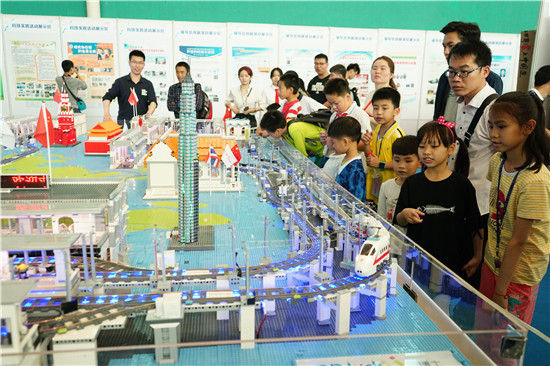 大赛还组织近10家省内科教企业现场展示新技术和新服务,两晚举办了3场科技交流体验活动。老师家长们品尝神奇液氮饼干,团队竞技3D作品,幸福于AV·3D艺术之夜;参赛中学生与大学生手拉手,唱响紫荆之夜篝火晚会的欢乐;小学生们畅玩6大科技活动,流连在科技嘉年华之夜。大家争先在200多个参赛中小学校的校徽墙前,留下幸福倩影;在积木搭建而成的“一带一路”和中国高铁模型前,点赞国家强大。