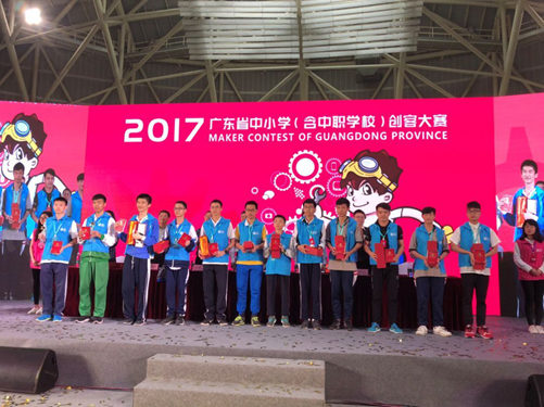 3月28日至30日,由广东省教育厅主办的“2017年广东省中小学(含中职学校)创客大赛”在广州大学城体育中心自行车馆隆重举行。经过校、县(区)、市级层层选拔,共有448件作品脱颖而出入选省级评审。专家认真评出特等奖53件、一等奖107件、二等奖135件、三等奖144件。