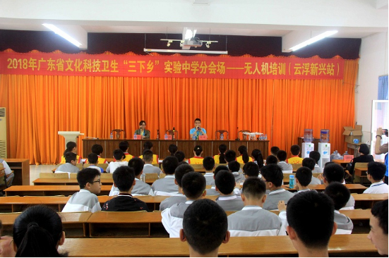 航模飞行、科普创客直通车、科普大篷车、科学秀——2018年3月26日下午,这些看起来高大上的科技产品集体亮相新兴县实验中学,让学生们大开眼界。多家新闻媒体和我校约3000名师生共同参加了此次活动。