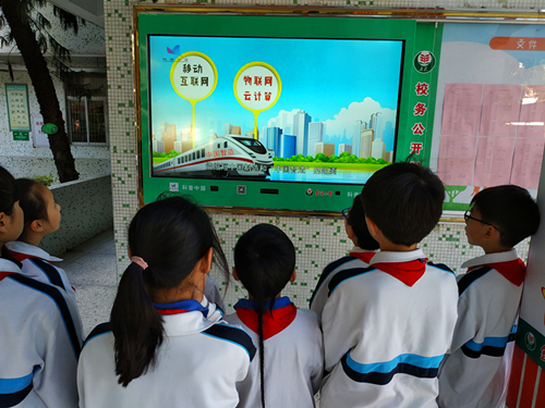 “让科技知识在网上和生活中流行!”瞧,一下课,孩子们就围拢在电子阅览屏旁边,正在津津有味地观看科普视频呢!金珠小学分别在总校区和华美校区的校务公开栏旁边安装一体机,建设科普电子阅览屏。师生、家长来到电子阅览屏前面,只需轻轻点击,即可打开科普中国网页,选择自己感兴趣的栏目内容,阅读各种科技资讯。科普电子阅览屏以贴近实际、贴近生活、贴近群众的方式,提供公众关注的卫生健康、食品安全、低碳生活、心理关怀、应急避险、生态环境等等科学信息。
