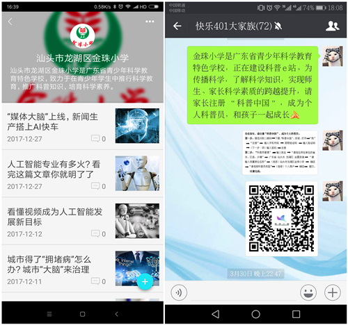 中国现在已有7亿手机用户用手机上网、上微信,手机已成为人们的“第六器官”。金珠小学在师生中宣传科普中国,并通过班主任向学生、向家长宣传科普中国,鼓励家长与孩子一起学习科技知识,陪伴孩子一起成长。制作科普员注册流程,由班主任发送到班级群,鼓励家长用手机注册科普宣传员,并通过分享到QQ、微博、微信、微信群、朋友圈,传播科学知识。利用小手拉大手,拓展新媒体科学传播的新渠道,促进平等互动、公众参与式的科普行为模式的彻底转变。