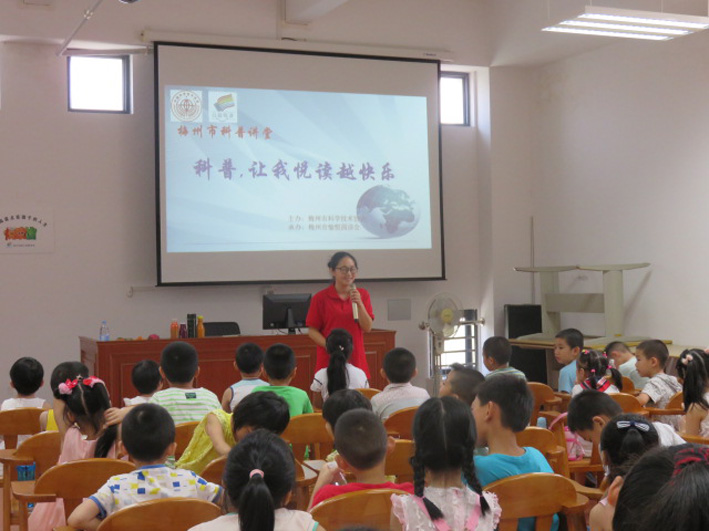 1、由梅州市科学技术协会与梅州悦阅读会联合举办的“科普,让我悦读越快乐”梅州市科普讲堂第一讲《不吃路边摊的食物》在图书馆热热闹闹地拉开了序幕。