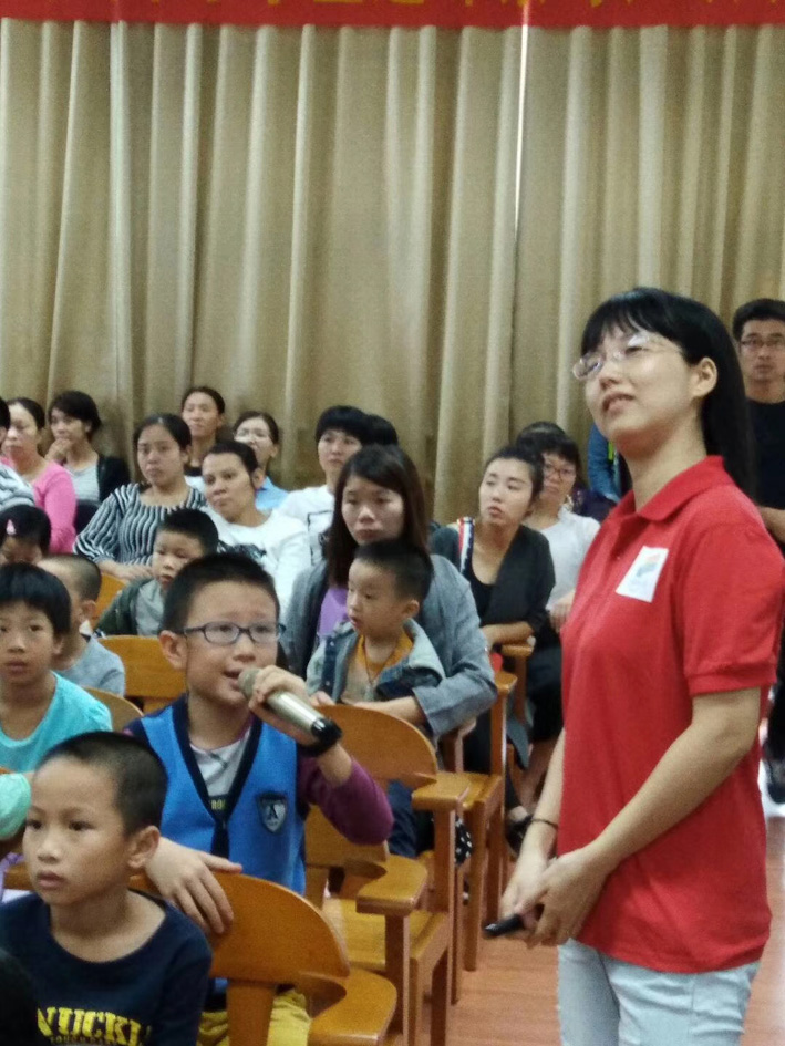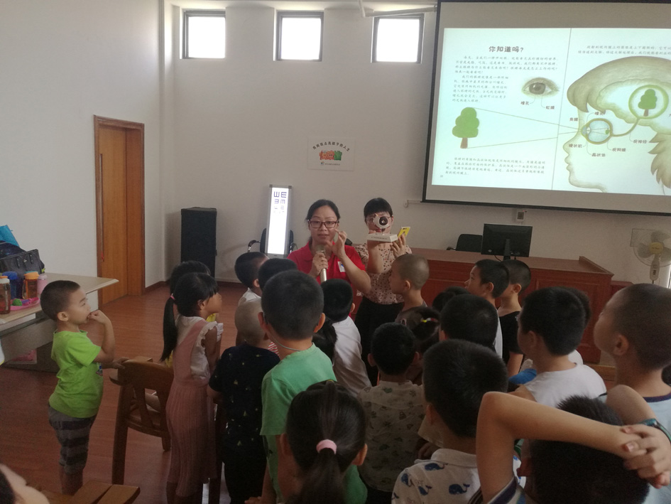 7、讲座通过绘本故事《爸爸的眼镜》和眼球模型展示,向在场的1至3年级小学生及学生家长宣讲眼睛的重要性,科普近视的危害,教小朋友们如何爱护眼睛、科学用眼、预防近视、避免意外伤害。