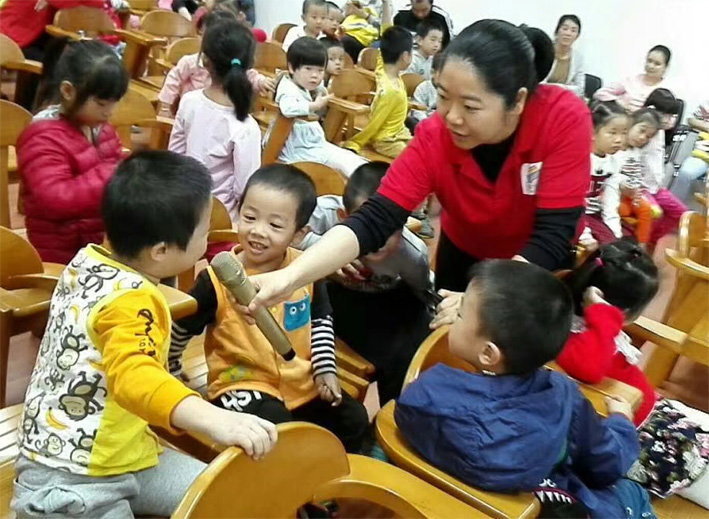 4、慧子老师通过绘本故事:《大恐龙来了》,教会了孩子们被拐骗后如何自救的方法。图为课后采访小朋友听课的感受。