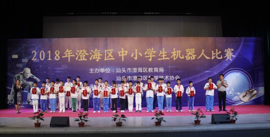 4月14日,由汕头市澄海区教育局、澄海区科学技术协会主办,澄海职业技术学校承办的澄海区2018年中小学生机器人竞赛在澄海职教中心艺体馆举行。这是澄海区自2014年底启动机器人教育之后举办的第四届中小学生机器人竞赛。区委常委、宣传部长黄雪芒出席活动。