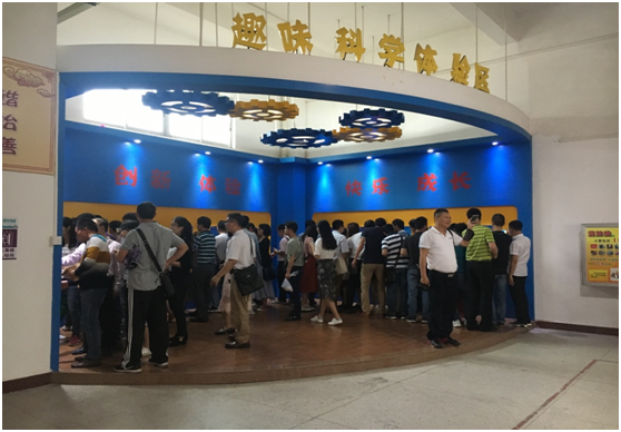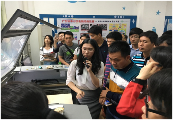 当日下午,研学活动第一站走进省级科学特色教育学校——江门市紫茶小学,参观了校园科学体验区、科学课教室、科普园等。湛江市的科技教师还与紫茶小学科技教师进行各类科技比赛、科学课程开发、少科院组织等经验交流,深受湛江市科技教师们欢迎。随后,研学活动第二站来到了中国(江门)教育装备体验中心,参观了正在举办的蓬江区创客体验社会实践活动,在教育装备展示区、VR体验区、航模模拟练习区、机器人模型区、创客作品展示区,湛江市科技教师们有幸体验一番,不亦乐乎,流连忘返。
