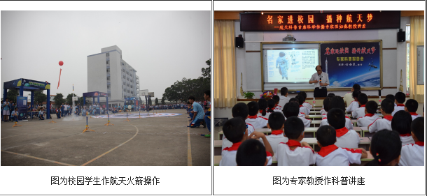 期间,梁启超纪念中学举行了“国家航天科普教育基地”和“载梦园”成立仪式暨第二届校园科技节,特别是青少年科技成果展示把活动气氛推向高潮,固体火箭发射演示、水火箭发射展示、航模表演等精彩环节让人惊叹,让人感受到航天科普教育的趣味性和创新性。4月26日至28日,活动还包括钱学森与中国航天图片展、太空画展和4位专家教授的报告会等,多种形式,内容丰富、精彩纷呈。钱永刚教授为梁启超纪念中学作题为《讲钱学森故事,明人生方向》的励志讲座。钦天钧研究员为梁启超纪念中学作题为《探索宇宙,造福人类》的科普讲座。田如森教授走进新会区平山小学作题《中国梦,航天梦》的科普讲座。金声教授走进新会区创新初级中学作题为《飞向太空》的科普讲座。