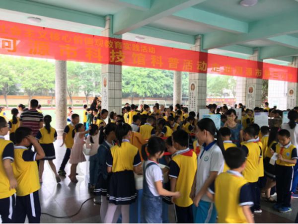 5月4日下午,“河源市科技馆活动进校园”系列活动走进河源市第三小学,1200多名师生参与其中。