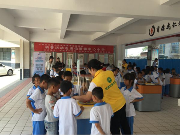 5月25日上午,河源市科技馆“科普活动进校园”走进仙塘镇中心小学。