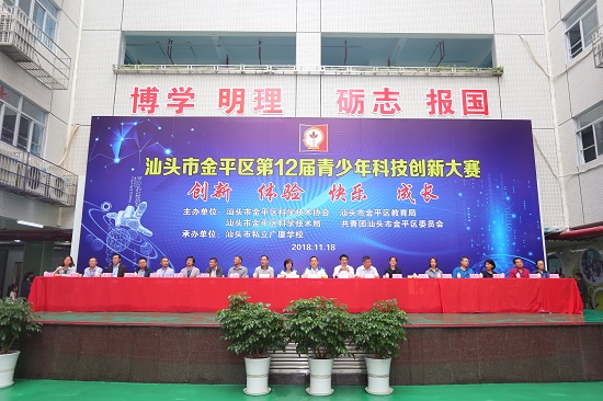 汕头市金平区第12届青少年科技大赛于2018年11月18日,在汕头市私立广厦学校如期拉开帷幕。作为金平区青少年科普教育的品牌比赛项目,青少年科技创新大赛至今已连续举办12届。此次大赛由金平区科协牵头组织,联合区教育局、区科技局、团区委共同举办。来自全区各中小学校22个代表队的青少年选手、科技辅导员、观摩师生和汕头大学的专家评委共500多人齐聚现场,共享一年一度的科技创新交流盛宴。出席活动的还有市科协党组书记洪祥武、区委副书记陈斌、区委常委丁丹霞、市科协副调研员曹世宝、区科协主席刘礼深、区教育局党委书记蔡少文、区科协副主席邵德昌、区科技局副局长邓苏丹等领导。