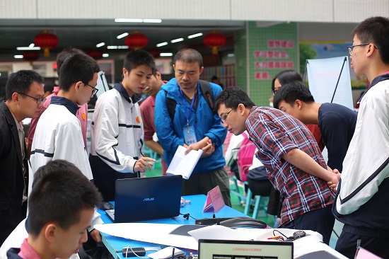 今年比赛采取封闭式答辩,要求学生独自进行讲解答辩,这对参赛者的应变能力和综合素质提出更高的要求。评选现场场内,创新作品各式各样,涉及技术设计、社会科学、环境科学、工程学、物理学、生物化学和计算机科学等方面,充分体现学生的奇思异想和解决生活、学习过程中碰到问题的能力,令人赞叹。各个参赛学生自信流利的向评委介绍起自己作品的创作过程、构想和创新点,并进行实际操作,面对评委的提问毫不怯场有条不紊;场外,131件创新项目和区第11届获奖作品制作成宣传展板,图文并茂的介绍每件参赛作品,吸引了参会师生、嘉宾驻足观看。各学校辅导老师、参观学生纷纷就参赛作品热烈交流讨论起来。
