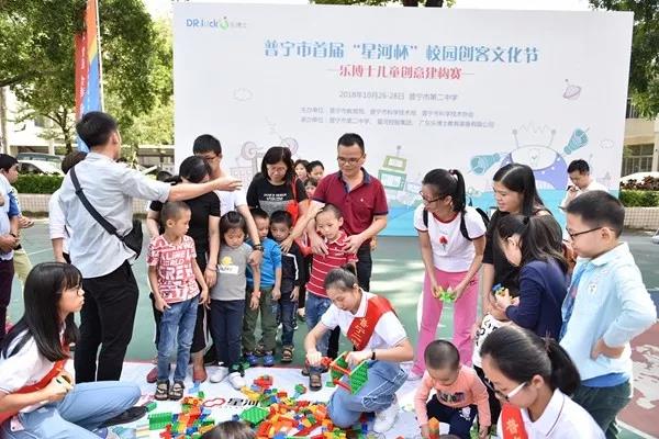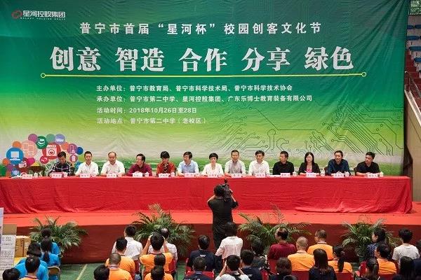 10月27日上午,由普宁市教育局、市科学技术局和市科学技术协会主办,普宁二中、星河控股集团、广东乐博士教育装备有限公司承办的2018年普宁市首届“星河杯”校园创客文化节在普宁二中维源堂隆重开幕。各级领导、嘉宾和普宁市各教育组长、市局直属学校校长,各单位有关负责人、师生代表和学生家长、创客爱好者等近3000人参加了活动。当天的活动有开幕仪式、创客作品展示、创客教育论坛和儿童建构赛等。