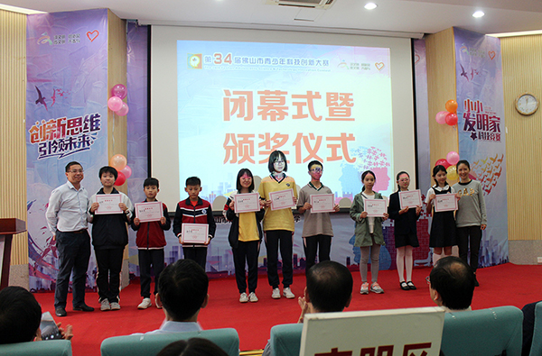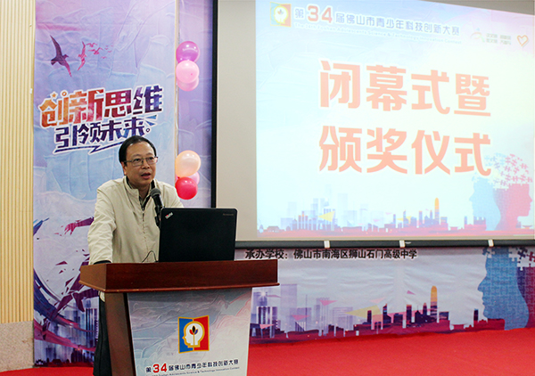 由佛山市科学技术协会、佛山市教育局、佛山市科学技术局主办的第34届佛山市青少年科技创新大赛暨第11届佛山市青少年动漫大赛于2018年12月1-2日在佛山市南海区狮山石门高级中学举行。佛山市委常委、统战部部长李政华,佛山市科协党组书记、主席黄文,佛山市教育局副局长杨汉波,佛山市科技局调研员贾煊,佛山市创新大赛评委会主任、佛山科学技术学院曾凡智教授等领导出席闭幕式并为获奖选手颁奖。