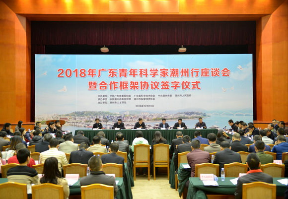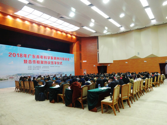 2018年广东青年科学家潮州行座谈会暨合作框架协议签字仪式现场