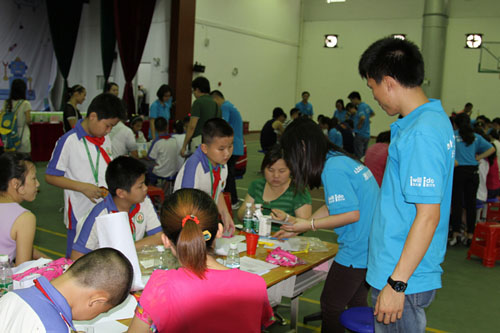 简短的启动仪式后,永岗小学的同学们在雅培志愿者的带领下,开始了他们的科学探索之旅。他们跟父母一起,开心地玩,跟父母开心地探讨,跟志愿者一起学习各种游戏中的科学原理,找寻生活中的各类科学现象,发现科学,学习科学,热爱科学,为欢度“六一”刻上幸福的记号。