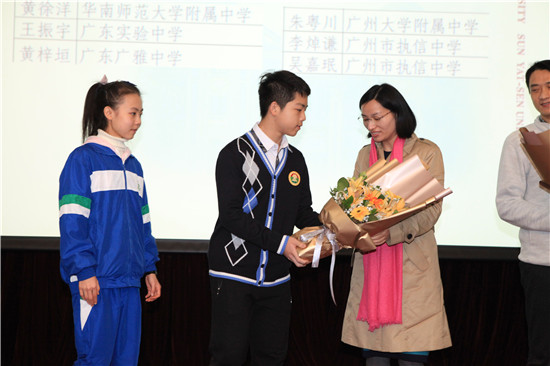 本次活动分为总结、拜师仪式、交流学习三大部分。吴焕泉副主席代表省管理办公室总结了2018年广东“英才计划”工作,充分肯定所取得的优异成绩,同时劝勉参与的同学放下功利与浮躁心,静心求学,找准自己的人生方向,努力学习,报效祖国。中山大学副校长李善民介绍了“英才计划”在学校里的开展情况,勉励同学们珍惜机会,积极参与。总结会还表彰了2018年度9名优秀中学生和7名优秀辅导教师。随后的新生拜师仪式上,56名新生依次上台向导师献花合影。