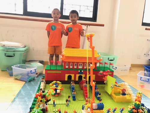 挑战赛要求小朋友积木搭建一辆小车,完成穿越龙门、跨越障碍、飞越“火山”和推动“巨石”、清理“垃圾”等多项“艰巨”任务,比试完成任务情况和时间长短,考察小朋友动手搭建、团队合作和现场应变能力。搭建赛以“喜庆建国70周年”为主题,参赛队员根据自己对主题的理解,在指定的比赛区域完成作品搭建任务,作品设计既丰富多彩、完整贴题,又有想象力和创新性,运用机械原理和动力装置让作品“动”起来,也要在评委面前口述作品的构思,描绘作品的“蓝图”。
