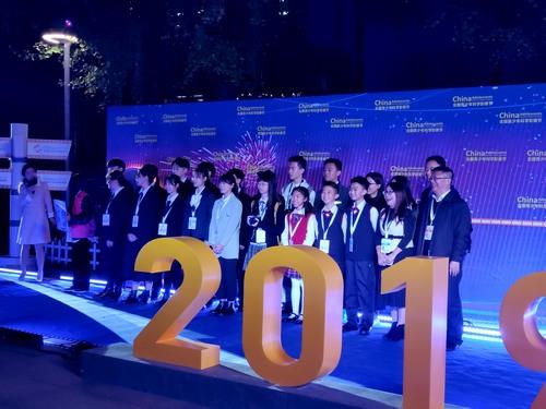 广州大学附属中学朱锺泓荣获一等奖、“科学原理一点通”优秀作品奖,右五为广州大学附属中学朱锺泓