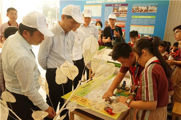 东莞市常平镇板石小学对活动十分重视,精心安排活动每个环节,启动仪式后,还组织了各项科学体验活动,展示同学们的奇思妙想,领导嘉宾对同学们的作品进行了现场点评。