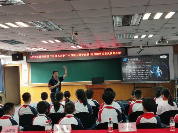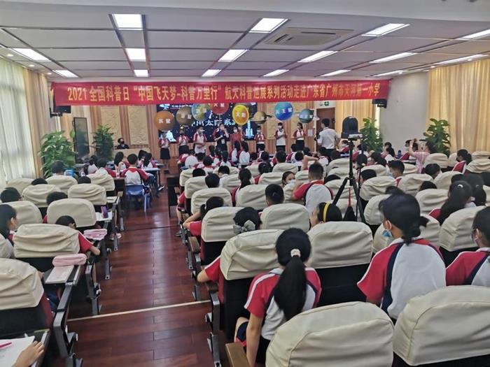 近日,在中国科协的指导下,由中国飞天梦志愿团主办,广东省科协、广东科学中心承办的2021年全国科普日“中国飞天梦-科普万里行”系列活动之“中国航天科普巡展”走进广东校园,先后在广州市天河第一小学、广州市越秀区东风西路小学、广州市越秀区先烈中路小学、广州市黄埔区教育研究院实验小学等10所学校开展航天科普活动,为学生们带来了妙趣横生、形式多样的科普内容,在孩子心中种下了科技强国的种子。中国飞天梦志愿团的航天科普专家、广东省科协事业发展中心(广东科学馆)、广东科学中心有关项目负责同志参加了活动,近千名学生现场参与活动,近万名学生现场收看活动的直播,广东科技报等媒体对活动进行了报道。