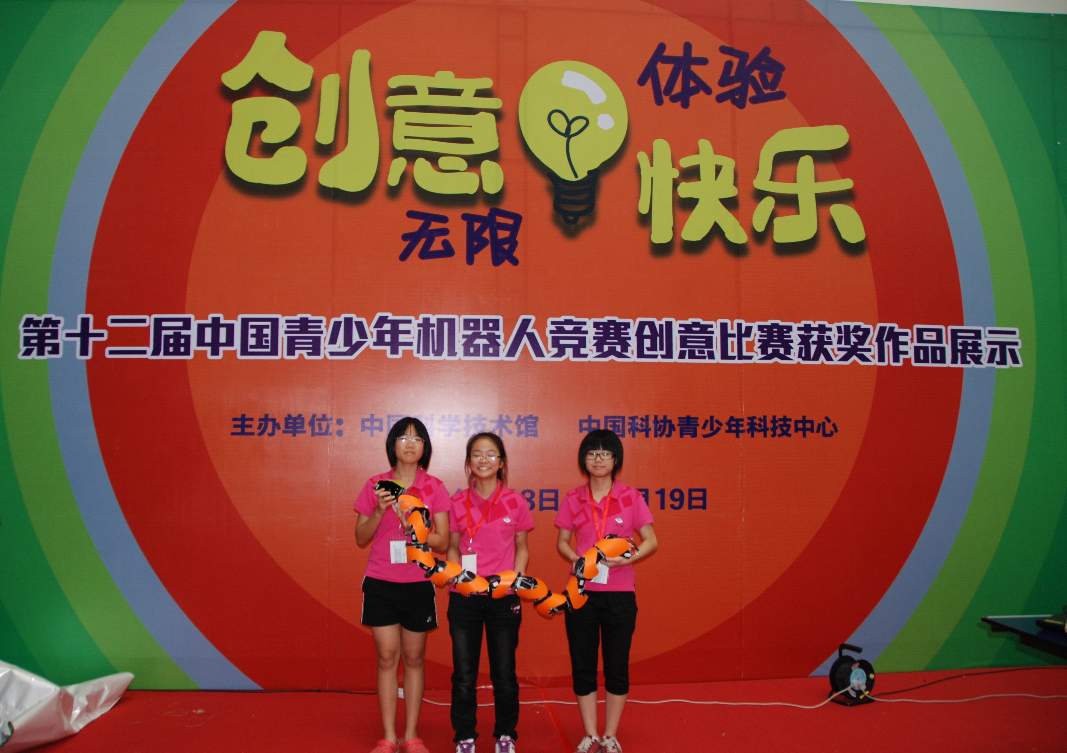 东莞市竹溪中学机器人竞赛创意作品“潜行三号仿生机器蛇” ,于今年8月8日至8月20日获邀参加中国科协青少年科技中心和中国科技馆联合举办的第十二届中国青少年机器人竞赛创意比赛获奖作品展示活动。