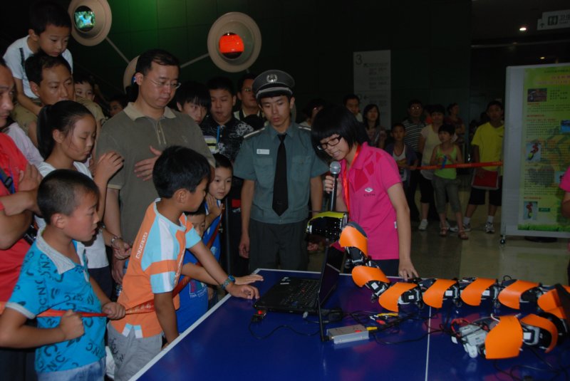 据悉,为普及机器人科技知识,使更多的青少年有机会了解机器人竞赛活动,领略科技创新魅力,主办方选取了今年7月在天津举办的第十二届中国青少年机器人竞赛中创意比赛的10件获奖作品集中在中国科技馆展示,并邀请获奖学生作为小科普志愿者向公众普及机器人科技知识。这10件参展作品分别来自广东、北京、天津、湖南、浙江、陕西、福建和辽宁,均以仿生机器人为主题,东莞市竹溪中学的作品是本届全国赛创意比赛初中组冠军。