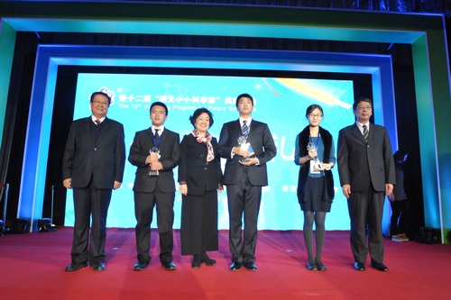 华南师范大学附属中学余欣航同学获得“明天小小科学家”称号(左2,全国仅三名)