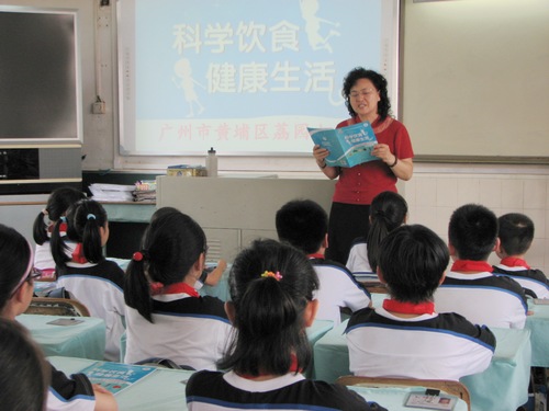 广州市黄埔区荔园小学的老师指导学生如何科学饮食、健康生活