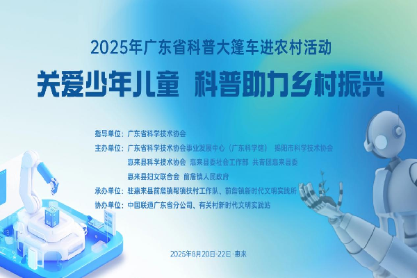 为深入贯彻落实“百千万工程”部署要求,凝聚社会力量推动乡村振兴,8月20-22日,由省科协指导,省科协事业发展中心、揭阳市科协、惠来县科协、县委社会工作部、团县委、县妇联、前詹镇政府联合主办,驻惠来县前詹镇帮镇扶村工作队等承办,中国联通广东省分公司等协办的“关爱少年儿童 科普助力乡村振兴”——2025年广东省科普大篷车进农村活动在揭阳市惠来县前詹镇举行,为当地2000多名少年儿童及村民带来沉浸式科学体验,助力乡村科普教育高质量发展。