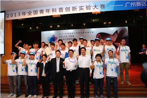 2013年11月24日,由中国科协科普部和共青团中央学校部主办的“2013全国青年科普创新实验大赛”复赛第四站在广东科学中心圆满落幕,大赛决出大学组——数据传输、风能利用、安全保护以及高中组安全保护共8支优胜队伍,将于12月7日赴北京参加全国总决赛。