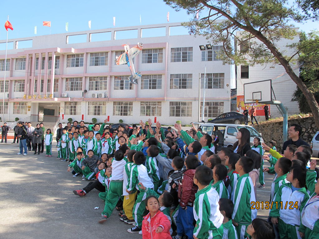 下蓝小学是一个少数民族农村学校,当学生们看到一字排开的先进“装备”,大家都禁不住内心的兴奋,里三层外三层地围了起来,问这问那,热闹非凡。在三坑小学,全校190多名师生早早占据有利位置,盼望模型表演早点开始。有些学生还站在教学楼上,希望体验高空全视觉、一览无遗的美好感受。