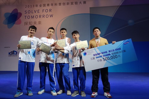 茂名市第十六中学的“联合团队”和肇庆中学的“金刚队”在广州赛区(复赛)过关斩将,分获前2名顺利晋级全国总决赛。最后,在全国10支高中组参赛队伍中,脱颖而出,双双获奖。茂名市第十六中学喜获亚军,赢取探索大奖,肇庆中学勇夺第三名,两所中学都各自获赠价值50万元的三星Smart School智能解决方案设备一套。