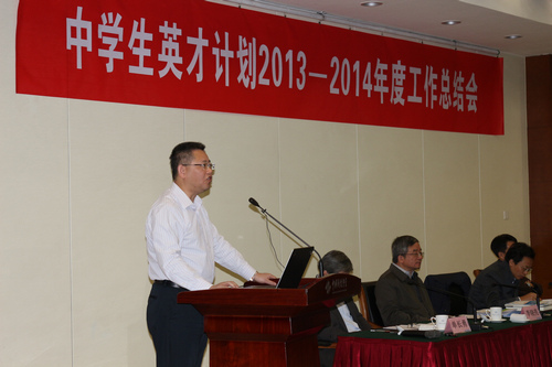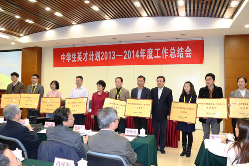 12月10-11日,中学生英才计划2013-2014年度工作总结会在中国科技会堂召开,全国政协副主席、中国科协主席、中学生英才计划专家咨询委员会主任韩启德;中国科协党组书记、书记处第一书记尚勇;教育部党组成员、部长助理林蕙青等领导出席会议,授予试点高校“中学生科技创新后备人才培养计划试点高校”牌匾。